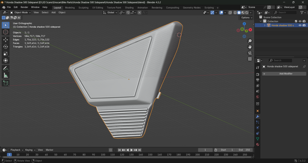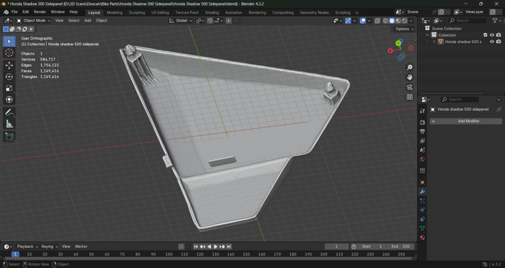 This is a 3D scan of a 1984 Honda VT500C Shadow 500 Right side Side panel/cover.