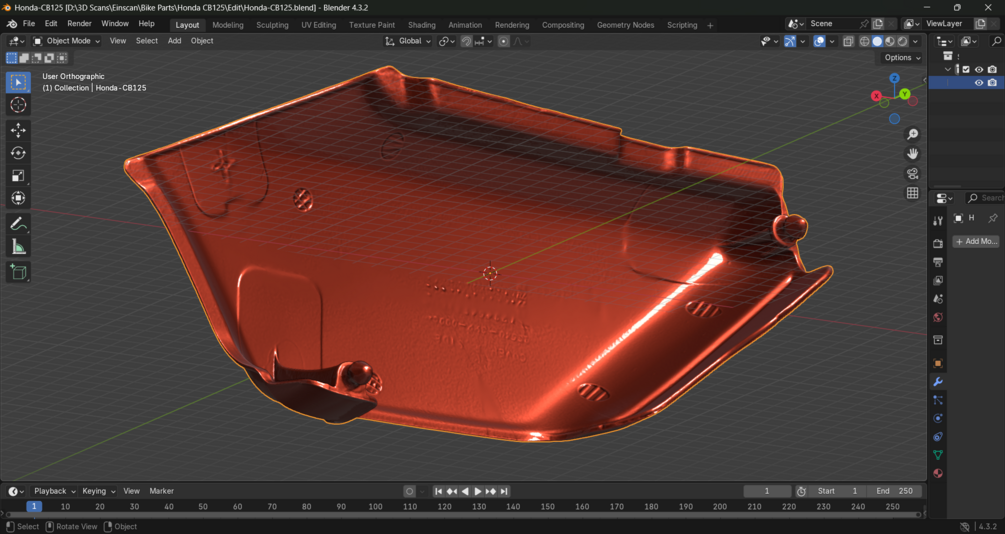 This is a 3D scan of a Honda CB125 Twin side panel from 1980.